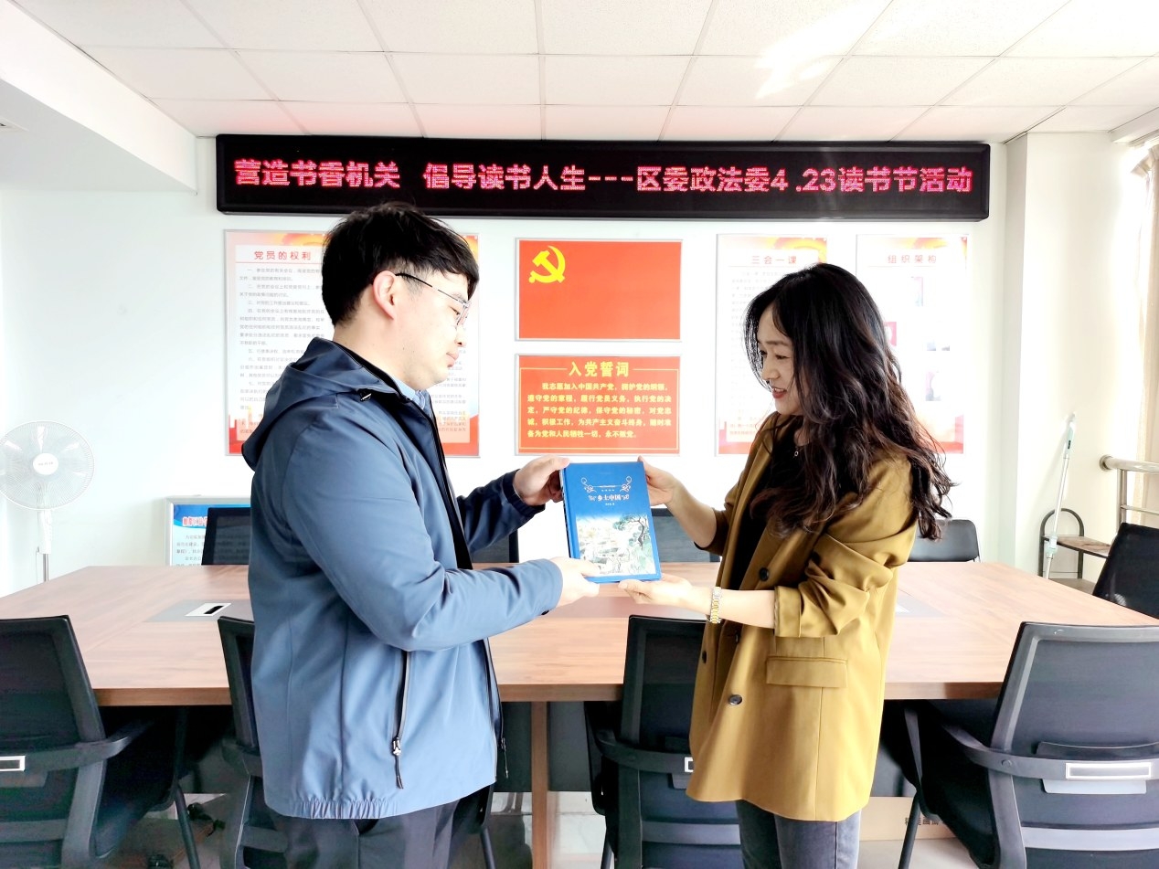 为迎接“4·23世界读书日”的到来,4月17日,魏都区委政法委工会以“营造书香机关,倡导读书人生”为主题,组织干部开展阅读活动,营造爱读书、读好书、善读书的良好社会氛围。本次活动通过赠送书籍、学习分享等形式,倡导机关全体党员干部职工真正把读书学习当成一种生活态度、一种工作责任、一种精神追求。图为当日活动现场,魏都区委政法委工会向干部职工发放图书。 许廷合 摄