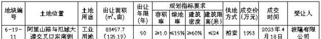 经襄城县人民政府批准,2023年4月18日在河南省土地使用权网上交易系统举行的国有建设用地使用权出让网上拍卖活动〔襄城县网拍(2023)3号公告〕,现将出让结果公告如下: