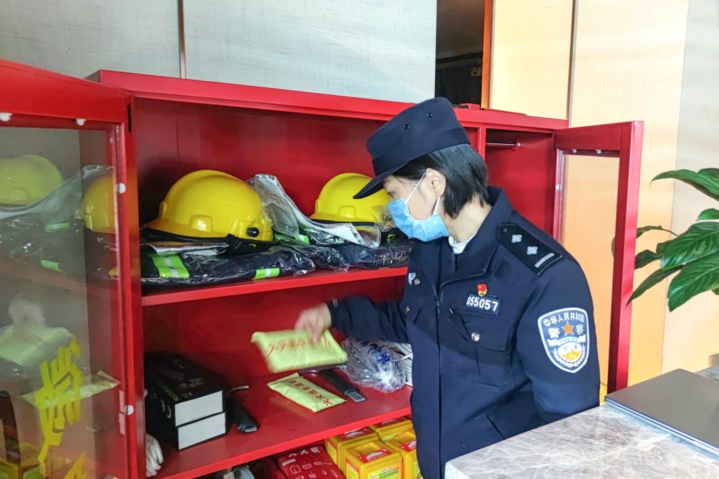 ◀ 4月29日,许昌市公安局东城分局民警走访辖区内重点场所,检查消防设备配备和使用情况,做到有备无患。 孙茹静 摄