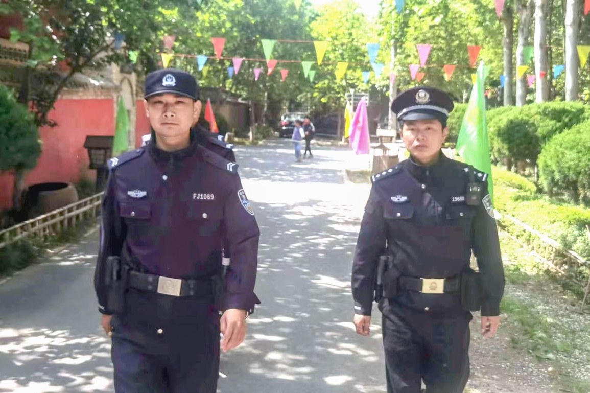 4月30日,襄城县公安局民警在辖区内景点附近值守,为民守护平安。 侯海燕 摄
