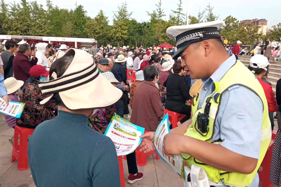 ▼ 5月1日,许昌市建安区公安局交通管理大队民警在北海广场宣传交通安全知识,提醒群众自觉佩戴头盔、使用安全带。 贾智仲 摄