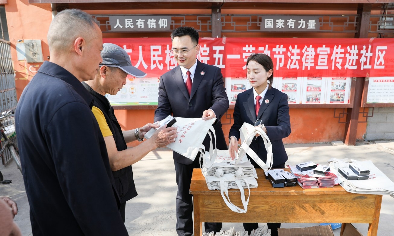 4月27日,许昌市人民检察院联合魏都区北大街道办事处西湖社区开展五一劳动节法律宣传进社区活动,引导社区群众运用正确有效的法律手段解决工作中遇到的难题,打造办事依法、遇事找法、解决问题用法、化解矛盾靠法的良好环境。 王凯 摄