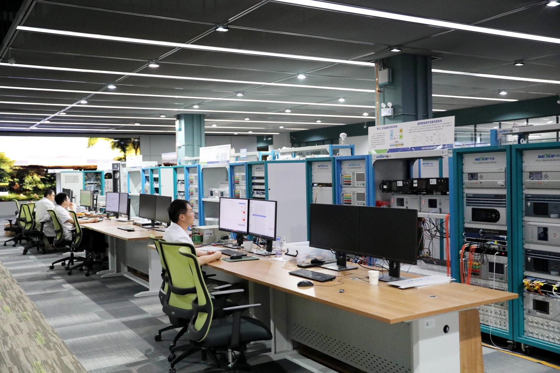 在电力系统实时数字仿真试验区,一个个试验架上整齐地摆放着各种样品,通过电缆连接着开普检测自主研发的实时数字仿真系统。“实时数字仿真系统是通过计算机对实际电力系统建立数学模型并快速并行计算,实现电力系统的实时仿真运行,也可以随时接收实际装置提供的控制信号并实时反应,由此可以与电力系统的继电保护和控制装置建立完整的闭环连接,进行相关仿真研究或试验。”李志勇说。