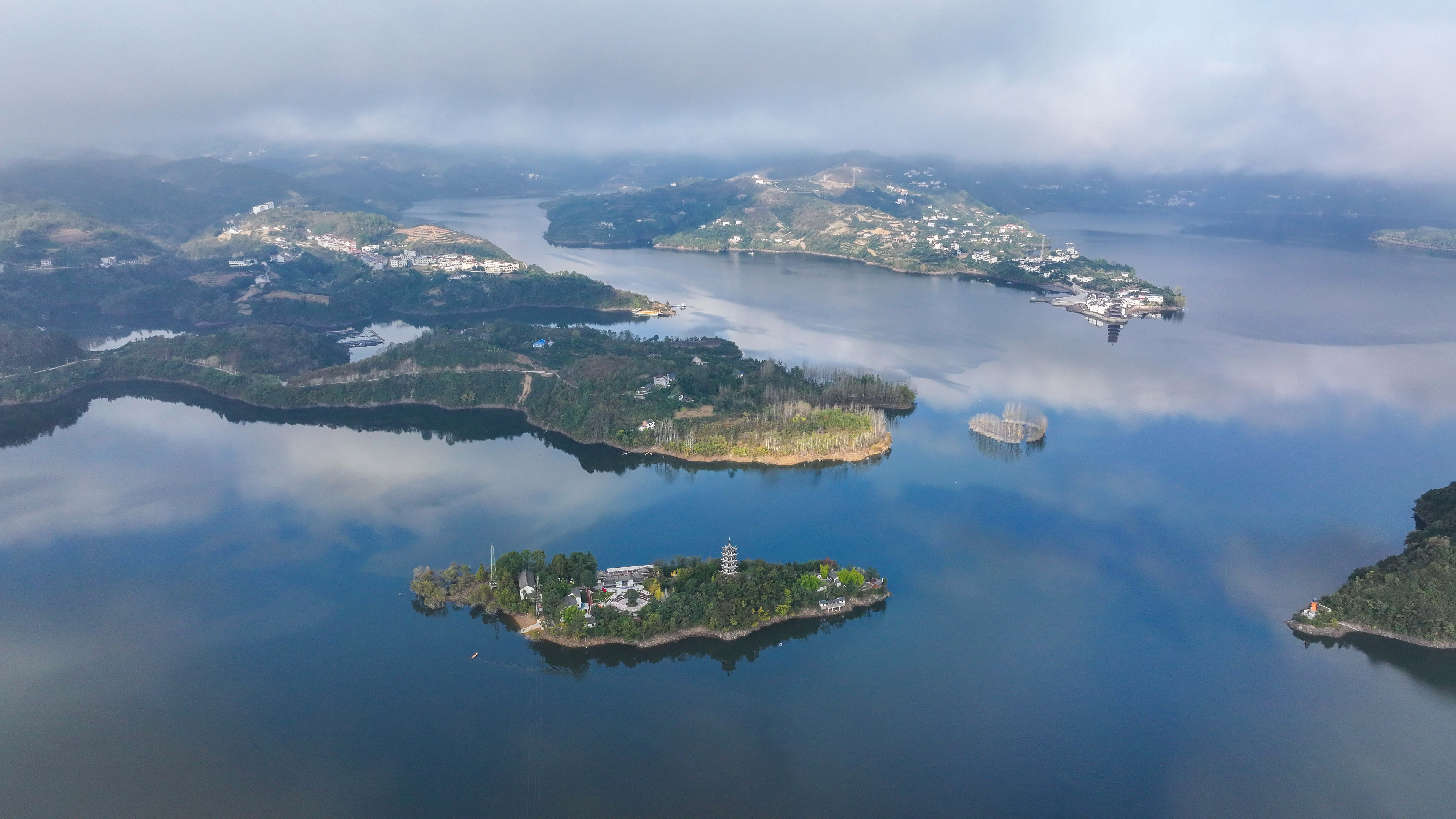 11月1日拍摄的陕西安康瀛湖景区秋景。秋日,祖国大地色彩斑斓,秋景如画。 新华社发